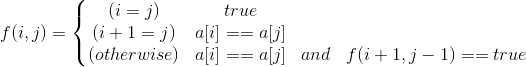 if (a[i] == a[j] && f(i + 1, j - 1) == 1) return ret = 1;