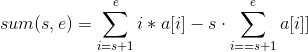return ps2[e] - ps2[s] - (s) * (ps[e] - ps[s]);