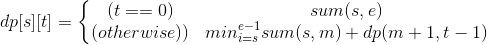 ret = min(ret, sum(s, m) + f(m + 1, t - 1, e));