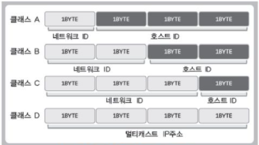 IPv4는 클래스가 A,B,C,D,E로 나눠진다. 첫번째 바이트가 0으로 시작하면 A, 10으로시작하면 B, 110으로 시작하면 C이다. 네트워크 주소를 이용해서 네트워크(라우터)를 찾고, 호스트 주소를 이용해서 호스트를 구분한다.