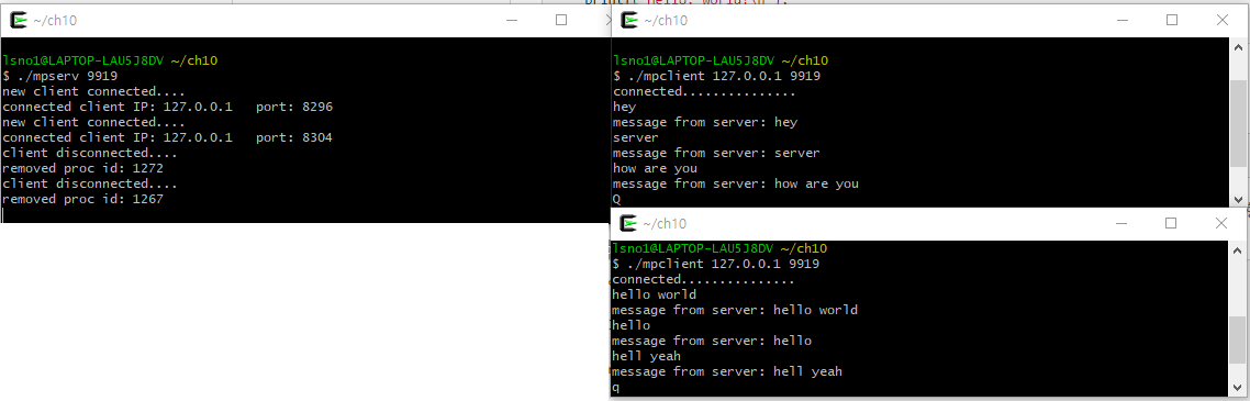 3. 클라이언트가 서버에 메세지를 보내면 서버는 그 메세지를 다시 클라이언트에게 전송함. 클라이언트 프로그램은 해당 메시지 출력.