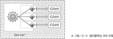 ->멀티플렉싱을 이용하면 하나의 프로세스로 다수의 client를 상대하는 서버를 구현할 수 있다.