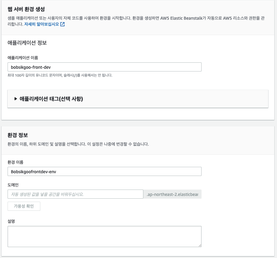 <Elastic beanstalk 환경생성>