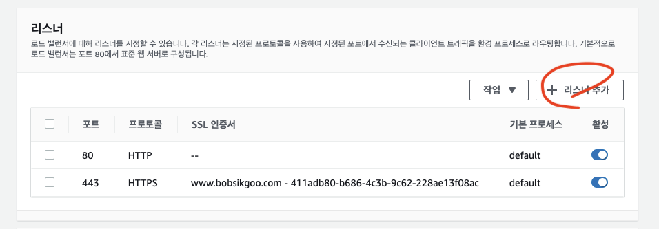 로드밸런서에서 리스너 추가
