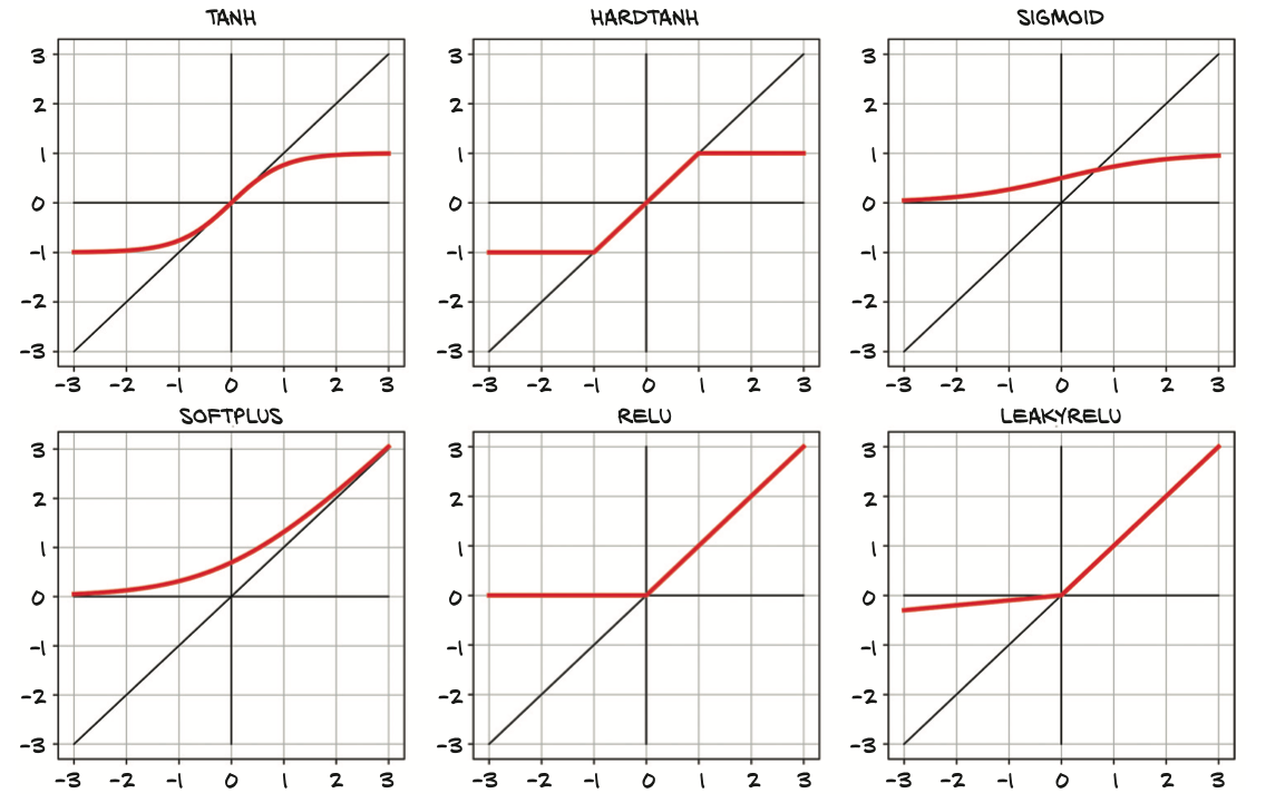 - 모델의 내부에선, output함수가 다른 값들에 대해 다른 기울기를 갖게 하도록 함(선형함수로는 불가능).