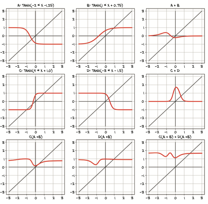 - 간단한 함수의 조합으로 복잡한 함수를 표현할 수 있는 수학적 요소
